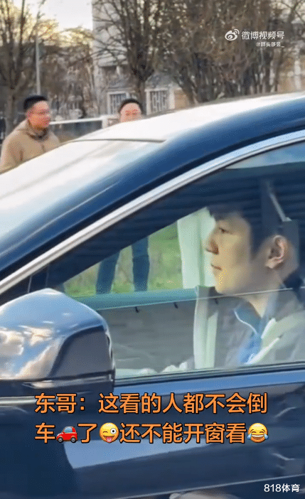 因为前后车距过小,樊振东没办法一次性开车驶出,马上有热心的中国球迷上前指挥,咚咚紧闭嘴唇憋不住笑了。